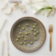 Cette plaque décorative en papier présente un design réaliste de branche d'olivier en vert terreux et marron avec un faux bord en terre cuite. Imprimé pour imiter la profondeur et la texture de la poterie méditerranéenne, il donne l'illusion d'une céramique peinte à la main, parfaite pour des rencontres rustiques ou italiennes.