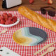 Assiettes En Carton Ondes de style rétro bleu et jaune