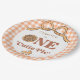 Make your baby's 1st birthday party unforgettable with this adorable "One Cutie Pie" pumpkin themed paper plate. This cutie pie is one, it’s time for a fun first birthday celebration! You can change the color on all text and clipart in this design. You can personalize this design by clicking on "Personalize this template" or if you wish to change the font, colors or arrange the design elements in a different way you can click on "Edit using Design Tool".