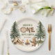 Celebrate your little adventurer with this One Happy Camper paper plates. Featuring a charming woodland camping theme with trees, tent, campfire, and forest animals, this design is perfect for a boy’s 1st birthday party. Fully customizable with your child’s name, party details, and wording. Ideal for rustic, outdoor, or camping-themed birthday celebrations.