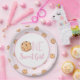 Assiettes En Carton One Sweet Girl cookies et Pink stripes Anniversair