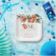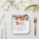 These charming first birthday party paper plates feature a peaches and blossom watercolor, along with elegant script typography. Designed by Thisisnotme©