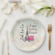 Plaques personnalisées en papier d'anniversaire joliment décorées avec un arrière - plan motif vintage avec des roses et d'autres éléments décoratifs. La partie supérieure est une illustration de la tour eiffel et des trottoirs écrits par Ooh La La. Une impression de rouge à lèvres rose chaud laissée à côté du célèbre repère avec le texte xoxo!