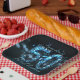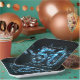 The background sets a sophisticated night-time mood with a deep black gradient and glowing "bokeh" light effects in soft blues and silvers. Finished with elegant, handwritten script typography in metallic silver and teal, this tableware is perfect for an elegant evening party, a gala-themed birthday, or a glamorous "Denim and Diamonds" event. Easily customize this template by adding the birthday honoree's name and the event date to create a truly unique keepsake for your milestone celebration.