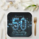 Celebrate the big 5-0 in luxurious style with these "Teal Blue Diamond" 50th Birthday paper plates. This design features a stunning, high-resolution digital rendering of the number "50" embedded with faux turquoise, sapphire, and teal gemstones, set inside a sleek silver chrome frame.