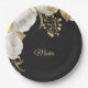 Belles fleurs blanches et or feuille noir mariage plaque papier