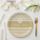 Assiettes En Carton Or personnalisé White Fleur de Lis Chevron