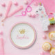Addition parfaite du ♥ A à votre petit sa fête d'anniversaire ! Thème d'anniversaire de princesse avec une couronne et des confettis d'or en rose et or.