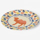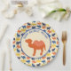 Célébrez les anniversaires et autres événements spéciaux en style avec ces assiettes de fête avec une illustration de style dessin animé d'un chameau bactrien ou d'un chameau avec deux bosses en orange contre un arrière - plan de couleur sable du désert avec votre propre message personnalisé en bleu. Le bord extérieur de ces assiettes de fête a un motif de dromadaires mignons en bleu moyen, bleu marine, orange et jaune.