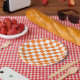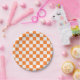 Assiettes En Carton Orange et blanc Checkered