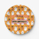 Cute Orange Ghost motif Plaques de papier pour les fêtes d'anniversaire d'Halloween. Le fond est Orange avec un motif qui combine des fantômes, des sorcières casquettes, des lollypops et des figurines de flocon de neige.