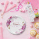 Plaques en papier d'orchidée tropicale. Il s'agit d'un design amusant et festif créé avec des orchidées violettes et magenta sur un arrière - plan blanc qui peut être changé à n'importe quelle couleur que vous préférez.