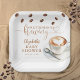 These stylish baby shower paper plates feature coffee beans and a cup of coffee, along with elegant typography that can be personalized with your name and special date. Designed by Thisisnotme©