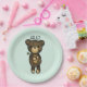 Assiettes En Carton Ours Brown mignon tenant une Fleur Jaune
