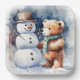 Assiettes En Carton Ours En Conduite D'Hiver Et Snowman