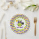Owl Being 4 est un Hoot Anniversaire plaques de papier de fête avec un design coloré et amusant avec un hibou de violet, or, et vert tenant un ballon et le numéro 4, bandes de chevrons de vert, violet, blanc et or, et texte qui dit Être 4 est un Hoot! Ces plaques de papier de 4e anniversaire de hibou sont un grand ajout à la célébration du quatrième anniversaire de n'importe quel enfant!