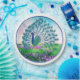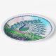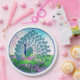 Joli paon en fleurs roses avec plumes et cadre bijoux.