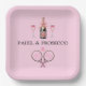 ASSIETTES EN CARTON PADEL PLATE: PADEL & PROSECCO CLASSIC PINK/BLACK