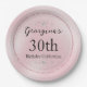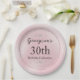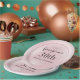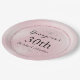 Ces assiettes de fête personnalisées présentent un design glamour. Une bordure scintillante de faux strass roses encadre l'assiette. Le fond est un design en feuille de couleur rose pâle au fini brillant. Un nom et une date d'anniversaire sont imprimés au centre, que vous pouvez personnaliser pour inclure votre propre nom, titre d'événement ou autre texte. Des diamants accentuent les parties supérieure et inférieure de la zone de texte. C'est parfait pour un anniversaire, une fête de mariage ou un autre événement spécial.
