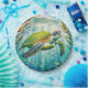 Watercolor painted turtle design with products.