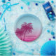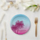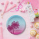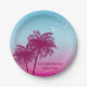 Assiettes En Carton Palmiers roses sur été tropical bleu