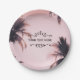 Assiettes En Carton Palmiers tropicaux et lumières Plage rose