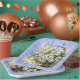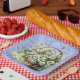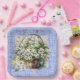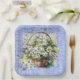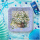 Une Plaque Papier Carré Conçue Avec Un Panier De Fleurs Blancs Faisy Sur Un Arrière - plan De Style Linge Bleu Pour Tout Type De Fête