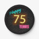 Panneau de néon rétro brillant sur mur en brique pour 75e anniversaire
