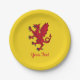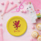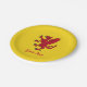 Customizable Paper plate with design with a flag of historic county of Somerset, in England, Great Britain; yellow flag with an illustration of a red dragon in the centre