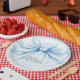 Assiettes En Carton Paper Plates for baby shower with adorable bow.