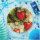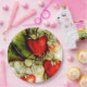 Fraise Vintage - illustration graphique montrant quelques fraises mûres et non mûres avec des feuilles verts. Il a une agréable sensation de début d'été. Vous pouvez customiser cette plaque papier avec votre monogramme/texte/logo .