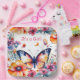 Un joli papillon entouré de rose, bleu, orange et violet fleurs aquarelle illustration baby shower des plaques de papier personnalisées de fille.