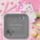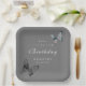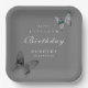 Belles plaques de papier moderne adulte fête d'anniversaire en gris neutre avec papillons peints à la main contenant un motif rose floral. Personnalisable pour n'importe quel jalon d'anniversaire