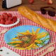 Le papillon Monarque sur un closeup tourné de tournesol qui est lumineux et coloré un jour d'été avec le ciel bleu dans le Kansas qui est dans une PLAQUE PAPER.