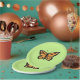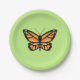 Cette plaque en papier présente une belle illustration d'un papillon Monarque orange de couleur arrière - plan verte.