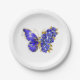 Bijoux, bleu, saphir, papillon aux fleurs pétillantes avec aile décorée de bleu, fleurs précieuses avec feuilles d'or sur arrière - plan blanc.