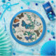 Papillons et papillons de nuit, illustration vintage, cadre en cercle bleu.