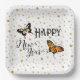 Assiettes En Carton Papillons Élégants & Étoiles Blanc Bonne année