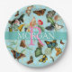 Assiettes En Carton Papillons vintages, Monogramme & Nom, Turquoise &