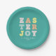 Un ajout amusant aux festivités de Pâques - un design typographique moderne avec 'Pâques Joy' dans une police pastel en détresse sur un arrière - plan turquoise. Ajoutez votre propre texte supplémentaire ou laissez vide.