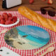 Assiettes En Carton Paradis tropical de plage avec palmiers Anniversai
