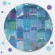 Une peinture murale semi-abstraite bleue inspirée de l'atmosphère parisienne au printemps. Art original de Nic Squirrell.