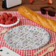 Plaques de fêtes en papier à la française ! Le motif est tiré à la main et présente des doodles de tout Paris, de la Tour Eiffel à l'Arc de Triomphe en passant par les chaises bistrot et les macarons.