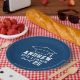 Les plaques de papier de graduation arrondies personnalisées présentent un design bleu marine et blanc (peut être modifié par "Customisez-le!") avec un capuchon de graduation et un texte personnalisé pour le nom et l'année de classe de la diplômée.