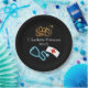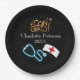 Plaque papier moderne Black Nurse Graduation Party avec typographie dorée "Félicats", casquette infirmier & stéthoscope néon en arrière - plan noir.Un design parfait pour célébrer le succès de l'obtention du diplôme comme infirmière.Cliquez sur le bouton Personnaliser pour le customiser dans votre propre texte.