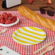 Assiettes En Carton Parti Jaune Blanc rayé moderne Modèle rond