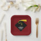 Fête de graduation créative ou assiettes d'événement pour la classe de '25 grades avec ligne drôle et casquette de graduation noire classique avec goût d'or sur arrière - plan marron.