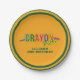Plats de partie de crayon. Conçu avec une boîte de style de crayon et un arc-en-ciel coloré des crayons. Les approvisionnements supplémentaires de partie de crayon sont disponibles à Metro-Event.com et aux Métro-Événements sur Zazzle.