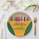 Plats de partie de crayon. Conçu avec une boîte de style de crayon et un arc-en-ciel coloré des crayons. Les approvisionnements supplémentaires de partie de crayon sont disponibles à Metro-Event.com et aux Métro-Événements sur Zazzle.