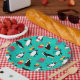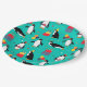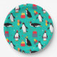 Une partie de la collection de partie de pingouin, pingouins d'amusement célébrant une fête d'anniversaire, arrière - plan de turquoise.